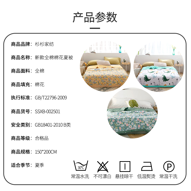 全棉棉花夏被【面料:全棉填充:棉花/颜色自选】 |
