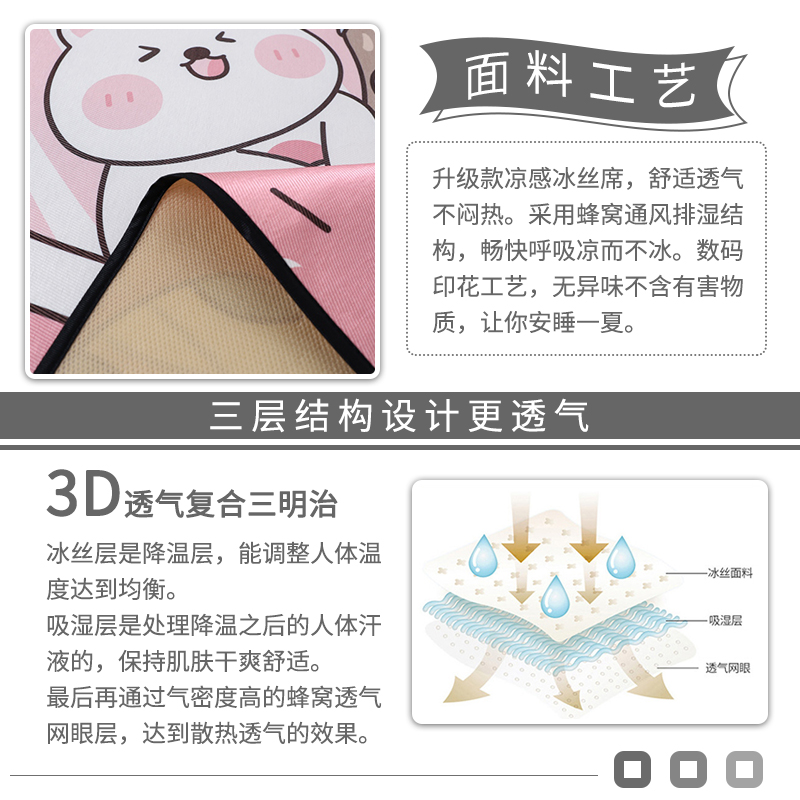 大版冰丝席凉席三件套【聚酯纤维/睡萌萌】 |