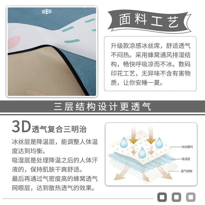 大版冰丝席凉席三件套【聚酯纤维/luck Duck】 |
