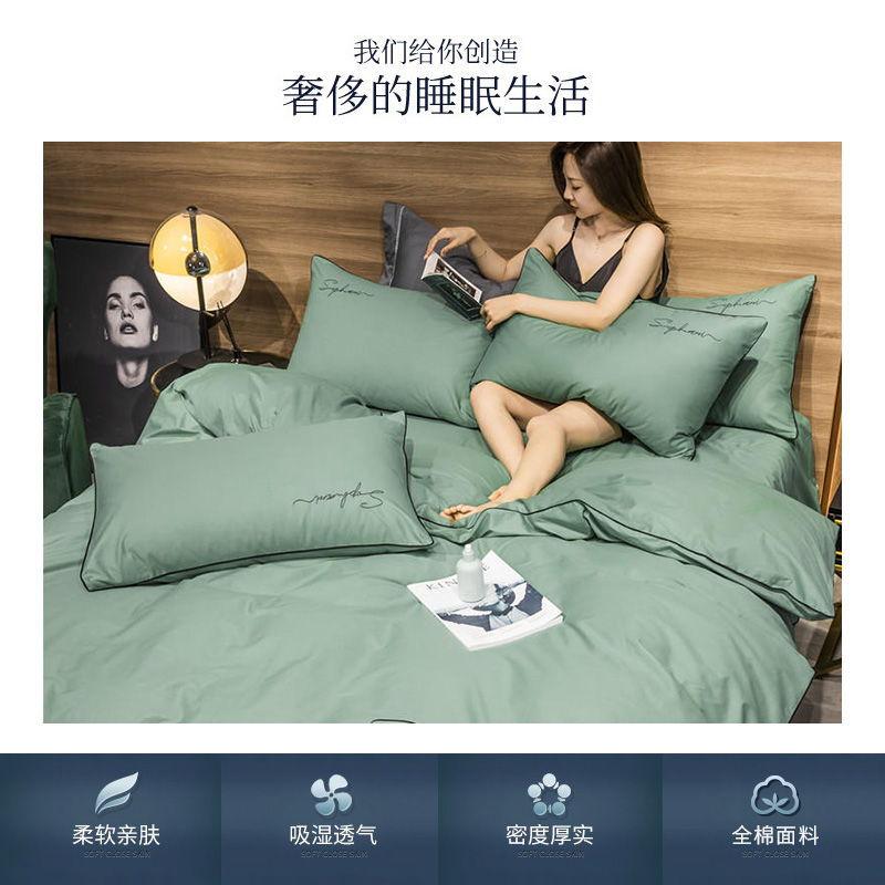 40s贡缎长绒棉四件套【全棉/抹茶绿】 |