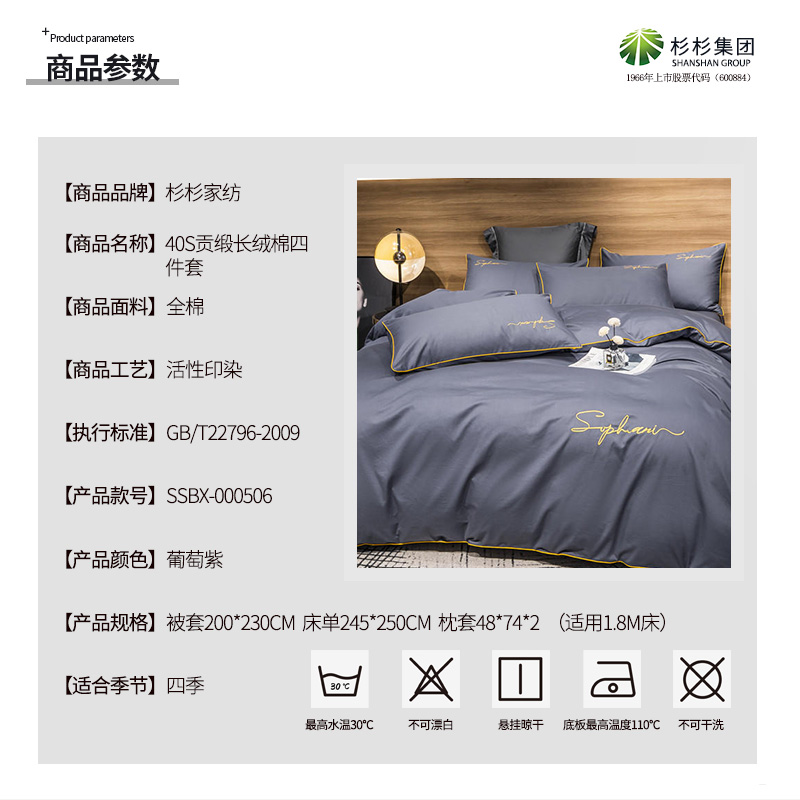 40s贡缎长绒棉四件套【全棉/葡萄紫】 |