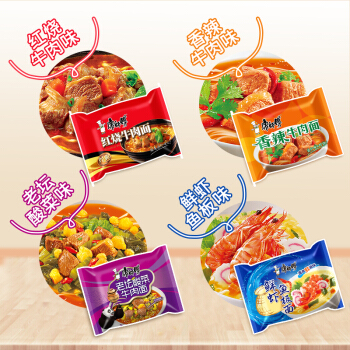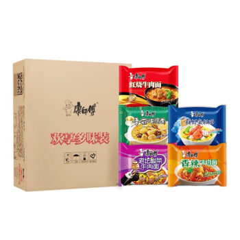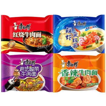 康师傅方便面红烧牛肉面5袋+香辣牛肉面5袋+鲜虾鱼板面5袋+香菇炖鸡面5袋+老坛酸菜牛肉面5袋袋面泡面整箱装 |