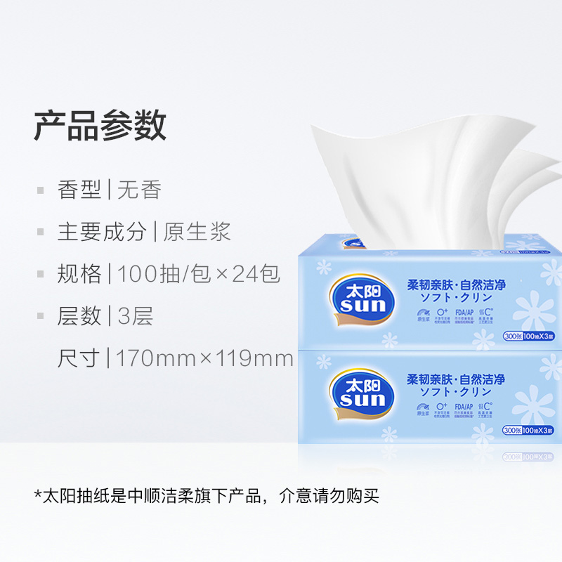中顺洁柔太阳软抽3层100抽24包装 |