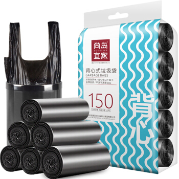 尚岛宜家 背心手提式垃圾袋 150只装 中大号加厚垃圾袋50*65cm*5卷 黑色 家用办公分类垃圾桶袋 |