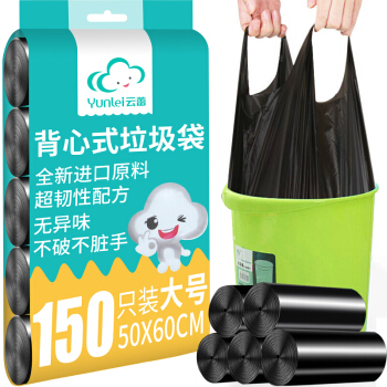 云蕾垃圾袋加厚背心手提式150只黑色中大号50*60cm分类家用厨余厨房清洁袋垃圾桶方便收纳袋 27371 |