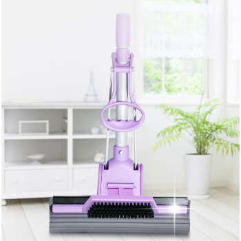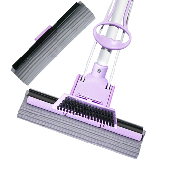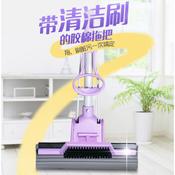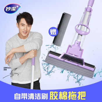 妙洁带刷海绵拖把 家用办公室吸水墩布懒人免手洗自动胶棉托地板挤水式伸缩长杆工具刮水神器 共2个替换头 |