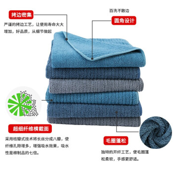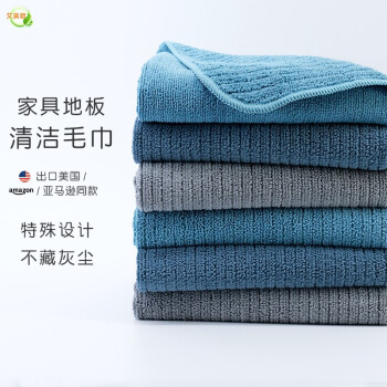 保洁专用抹布家具地板家务清洁毛巾擦地吸水不掉毛易清洗擦手巾 40x70cm 超厚6条装(青蓝灰各2条) |