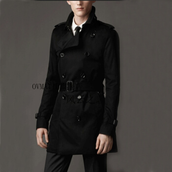 GORANKADI香港潮牌2019春秋薄男士长款双排扣英伦修身中长款防水大衣风衣外套有大码 黑色 4XL |