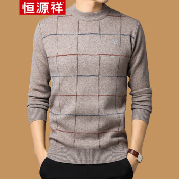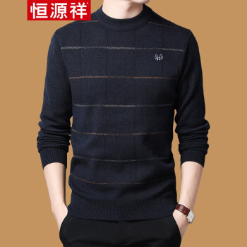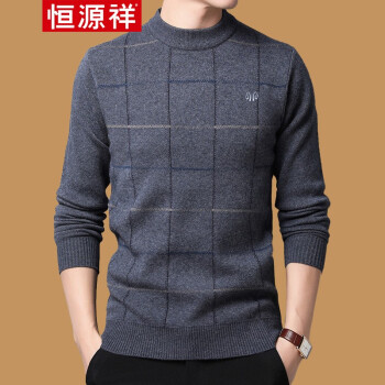 恒源祥 毛衣 男士中青年2019秋冬新品圆领套头针织衫 加厚保暖休闲简约男装打底毛衫 H7818中灰 170推荐120-140斤 |