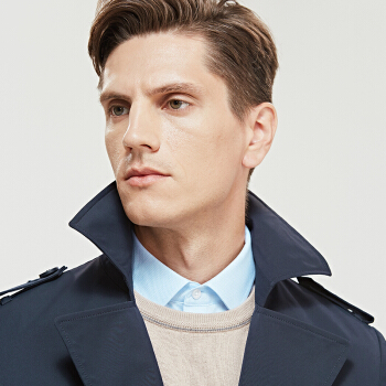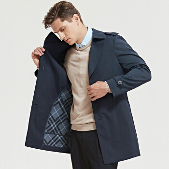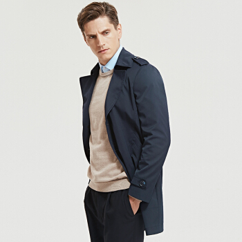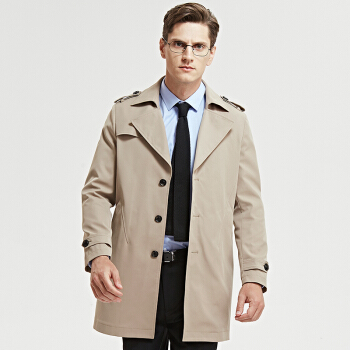 七匹狼男士休闲风衣 中长款男装春季新品净色复合面料单排扣翻驳领外套 701(卡其) 180/2XL |