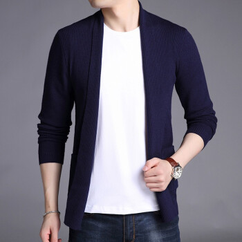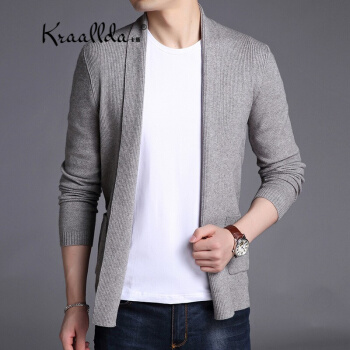 卡搭品牌轻奢男装开衫男毛衣外套夏季长袖韩版休闲男装针织衫春秋纯色修身潮流线衫 灰色 180/XL 刑释毛衣 |