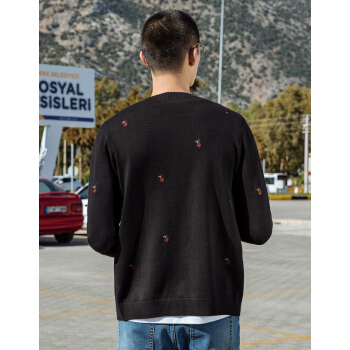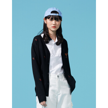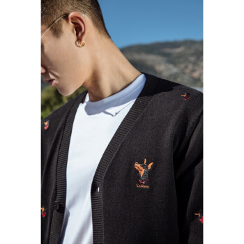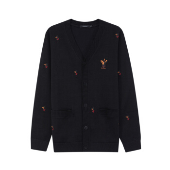 卡宾男装黑色针织衫外套春夏新款杜宾犬刺绣简约时尚情侣装B 煤黑色01 52/180/XL |