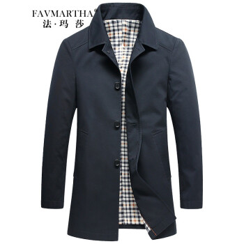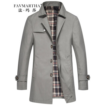 法玛莎品牌中长款风衣男秋你新款商务休闲爸爸修身格子外套 浅灰6627 170/M |