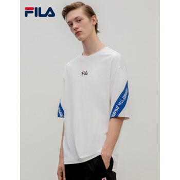 FILA 斐乐男装White Line系列官方男子针织短袖衫新款宽松短袖T男上装商场同款 标准白-WT 180/100A/XL |