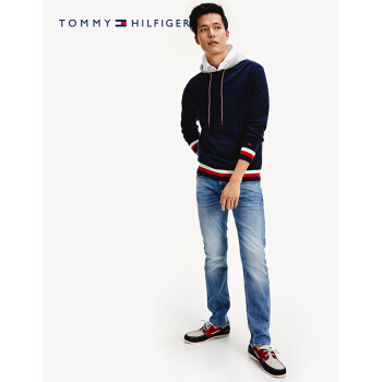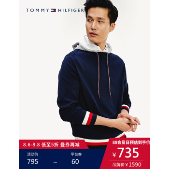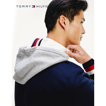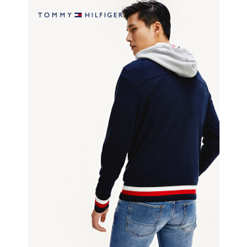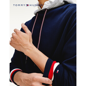 TOMMY HILFIGER男装春季拼接撞色连帽套头针织衫 MW0MW13128 藏青色DW5 M |