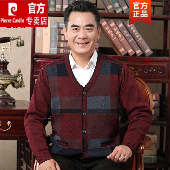皮尔卡丹旗舰官方店 中年爸爸秋装打底衫秋春款毛衣开衫外套中针织外穿羊绒羊毛衫针织 酒红 185/XXXL |