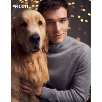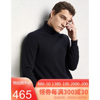 威可多VICUTU冬季男长袖针织纯色羊毛羊绒混纺灰色修身高领毛衣VRW88381579惠 黑色 175/92A |