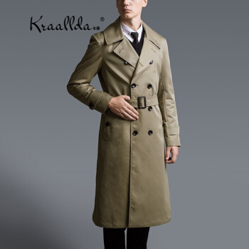 卡搭品牌轻奢男装休闲男士风衣中长款时尚商务春秋外套翻领大码潮大衣中年男装上衣 深卡其色 XL |
