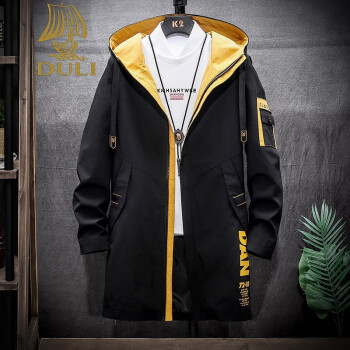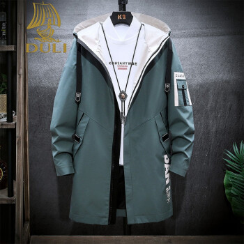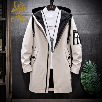 独励(DULI)青少年风衣男中长款韩版潮流春秋季新款初中高中学生帅气外套 DCQ8035卡其 XL |