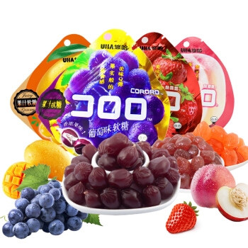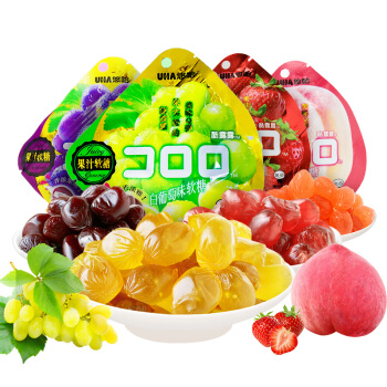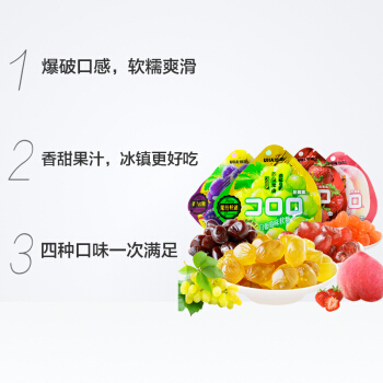 悠哈UHA 网红零食 爆浆果汁软糖 酷露露 葡萄/白葡萄/草莓/桃子/芒果(口味随机4包)52g*4 |