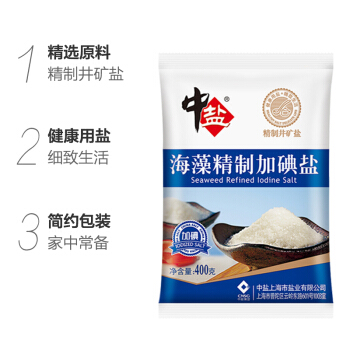 中盐 盐 海藻精制加碘盐 食盐 400g 中盐出品 |
