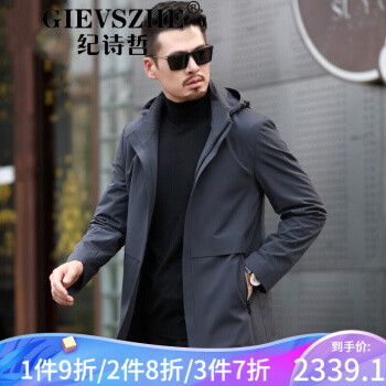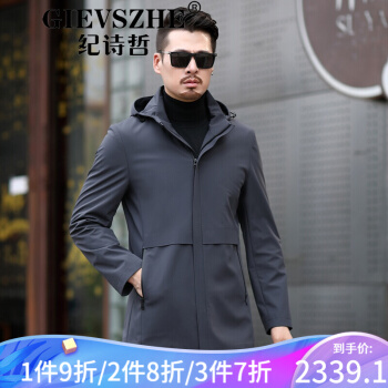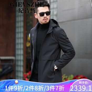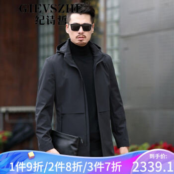 纪诗哲轻奢品牌男装风衣新款中长款男大衣秋季新款商务男装中年休闲春秋外套 黑色 170/88A |