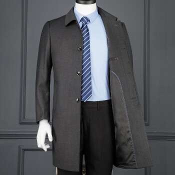 美国苹果男装风衣男商务休闲中老年大码胖子肥佬中长款褂子秋冬新款免烫外套品牌男士衣服 812深灰 50/175/92A/L |