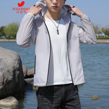 富贵鸟防晒衣男夏季新品超薄透气防晒服男装大码户外防紫外线速干外套夹克弹力皮肤衣垂钓服抗皱 白色 XL |