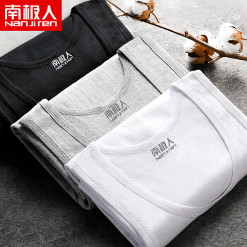南极人(Nanjiren)NSJA0660 纯棉男士背心螺纹运动背心打底衫黑白灰3件装 XL |