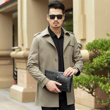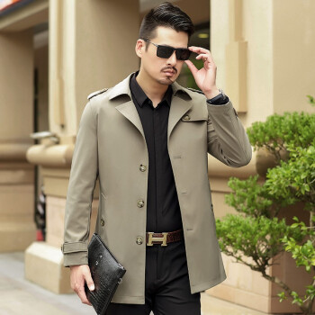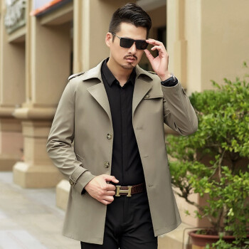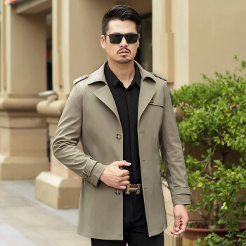 卡帝乐鳄鱼秋冬新款风衣夹克男 中青年商务翻领英伦风修身秋季防风可选冬季加厚保暖男士中长款外套 卡其春秋款 XL(180) |