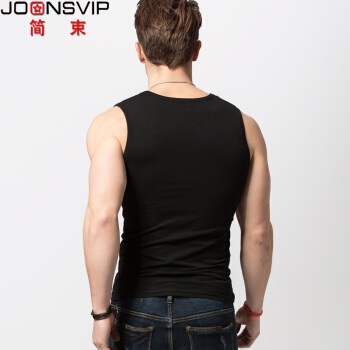 简束 背心男夏纯棉v领无袖宽肩男士运动背心健身休闲修身紧身弹力打底汗衫T102 黑色 XL |