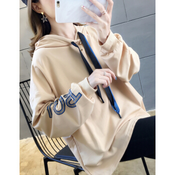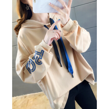 婪澈卫衣女秋季新款女装长袖韩版INS宽松连帽款假两件卫衣女潮 卡其色 L |