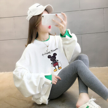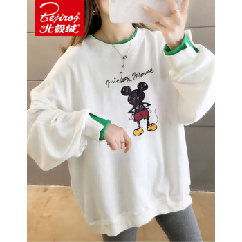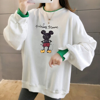 北极绒卫衣女春秋季新品潮流时尚卡通印花圆领卫衣女休闲宽松套头长袖假两件上衣女2505 白色 请拍正确尺码 |