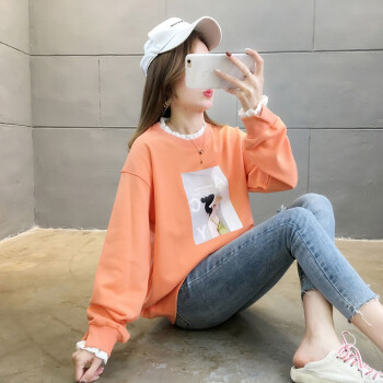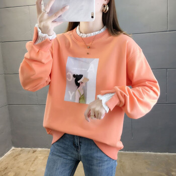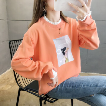 卡赫希卫衣女春秋季新款休闲百搭假两件卫衣女长袖宽松韩版潮流薄款ins潮上衣女5001 桔色 请拍正确尺码 |