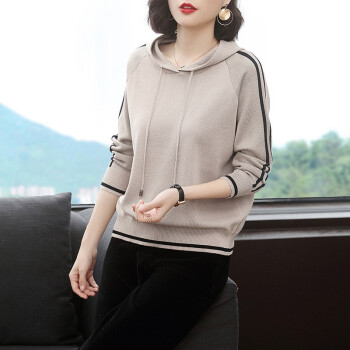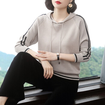 【精选好货】晞薇女士卫衣春秋装新款时尚女装韩版带帽40岁中年妈妈宽松春秋百搭优雅上衣打底衫女 杏色 请拍正确尺码或咨询客服 |