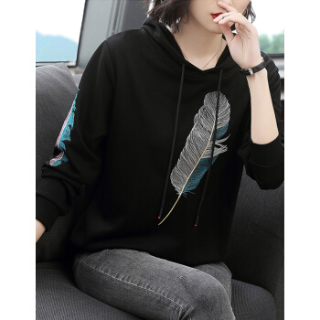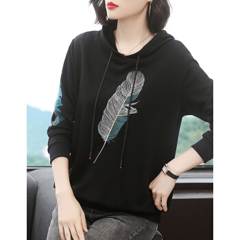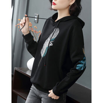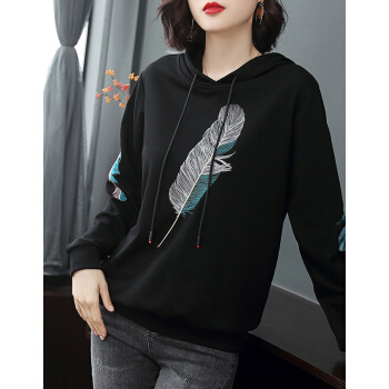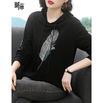 【精选好货】晞薇女士卫衣春秋季新款韩版带帽宽松百搭四十岁中年妈妈装慵懒洋气绣花上衣女 黑色 请拍正确尺码或咨询客服 |