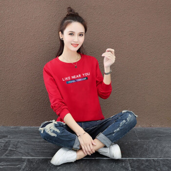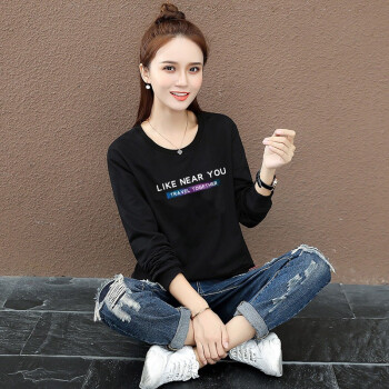 恋着你 白色卫衣女宽松春秋装薄款圆领女士长袖t恤韩版潮流闺蜜装打底衫学生百搭外套 白色 S(建议80斤以内) |