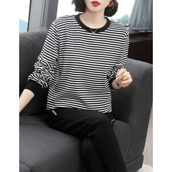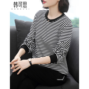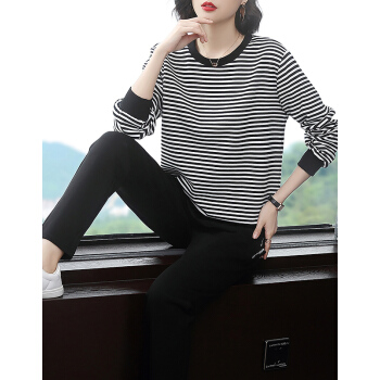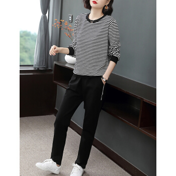 【精选好货】韩可思妈妈运动套装女洋气春秋装条纹休闲新款韩版气质四十岁宽松百搭中年长袖两件套 黑色上衣 请拍准确尺码或咨询客服 |