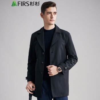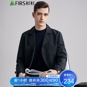 FIRS杉杉 风衣男 秋季新款商务休闲外套男士西装领轻薄款上衣夹克男 FDJ20382208 黑色 170 |