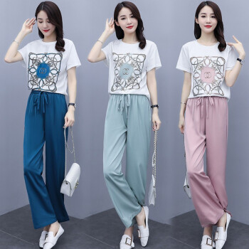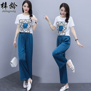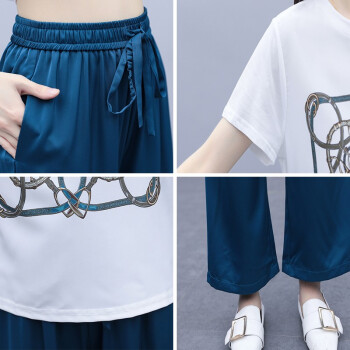 梓龄 休闲运动套装女卫衣套装女夏季新款气质女神范洋气时尚减龄休闲阔腿两件套女 蓝色 请拍对应码数 |