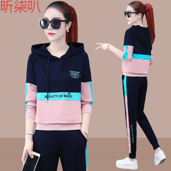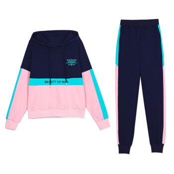 昕柒叭连帽卫衣运动套装女潮流休闲运动服宽松韩版两件套 宝蓝色 L(建议98~110斤)出监用夏服 |
