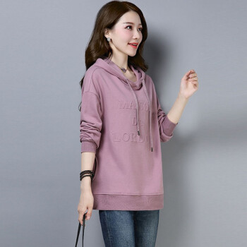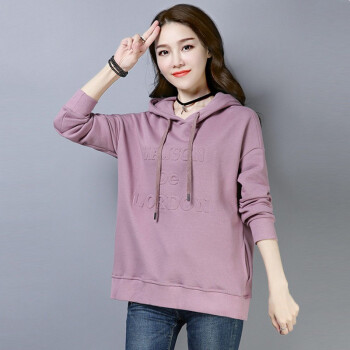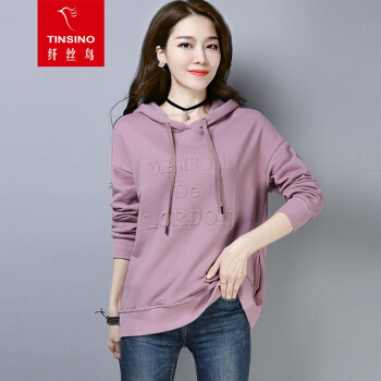 纤丝鸟 TINSINO 卫衣女秋季新款韩版慵懒风时尚连帽卫衣女宽松休闲ins百搭套头上衣 浅紫色 请拍正确尺码 |