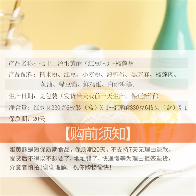 原生态海鸭蛋红豆味雪媚娘蛋黄酥&榴莲酥组合 |
