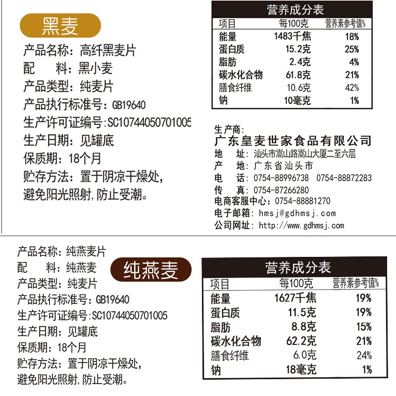 快熟纯麦片&高纤黑燕麦片组合装 |
