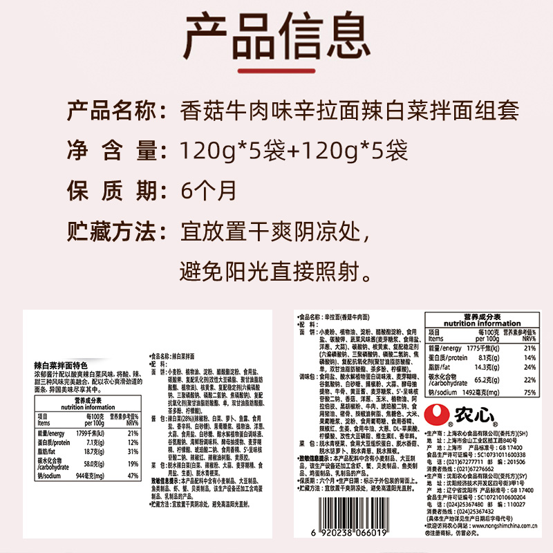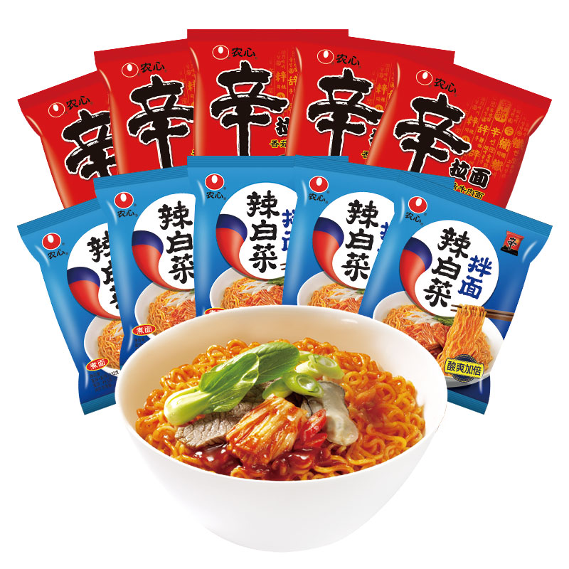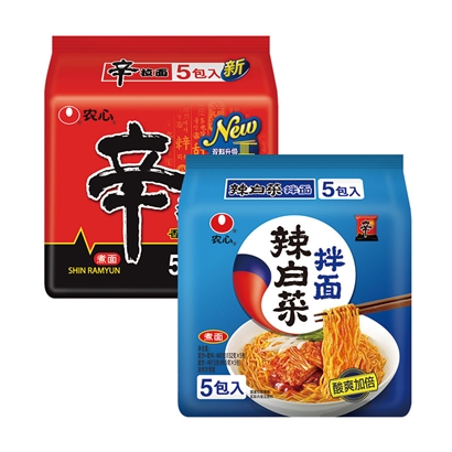 农心辛拉面香菇牛肉味5连包&农心辣白菜拌面5连包 |