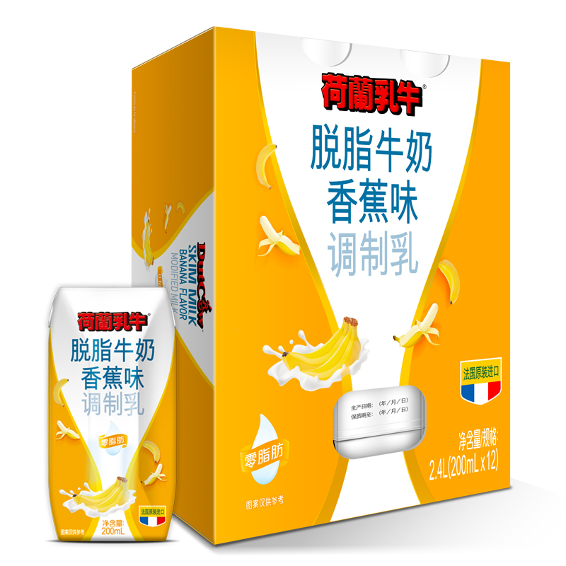 整箱装香蕉味荷兰乳牛进口脱脂牛奶 |