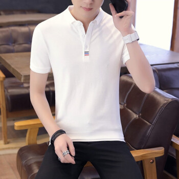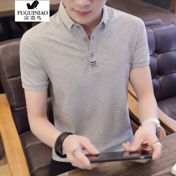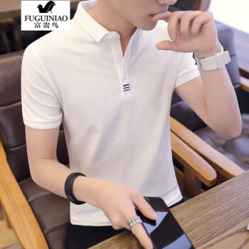 富贵鸟短袖t恤男夏季新款POLO衫半袖衣服男商务休闲棉打底衫夏天男装衬衫领翻领 黑色 131至145斤-XL |