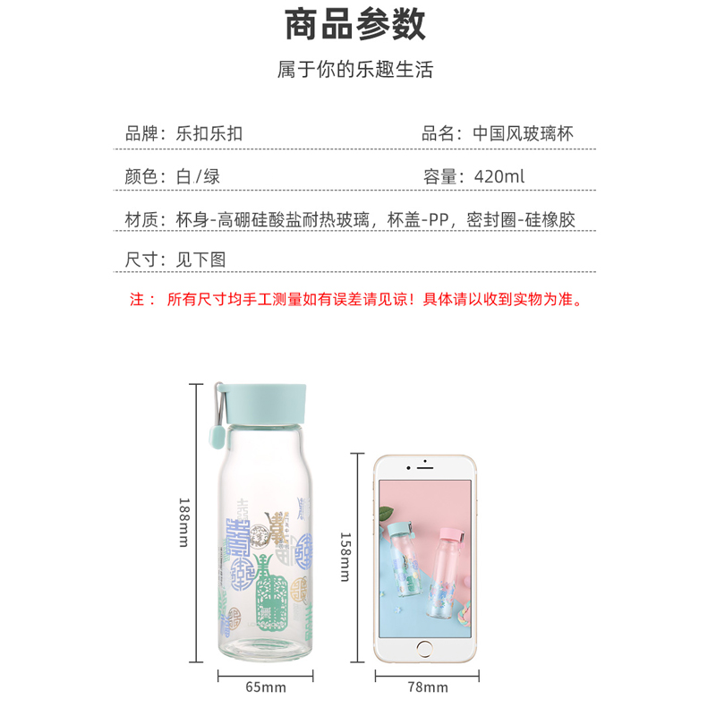 420ml创意中国风提绳便携茶杯耐热玻璃水杯【玻璃/颜色自选】 |