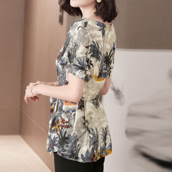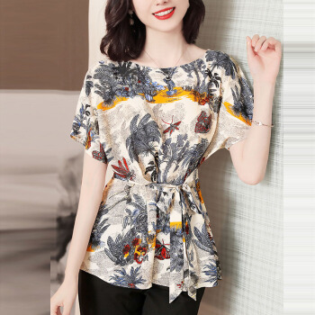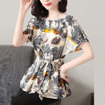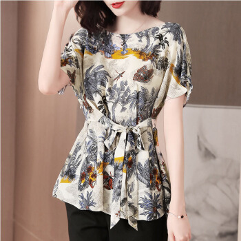 依语幽香雪纺衫女夏季新款印花上衣时尚气质欧货小衫收腰洋气 图片色 XL |