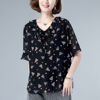 衣典零一 夏装新款夏季女装雪纺衫女时尚百搭韩版休闲宽松女士妈妈装印花短袖T恤衫女上衣衫衣小衫 黑色 XL |